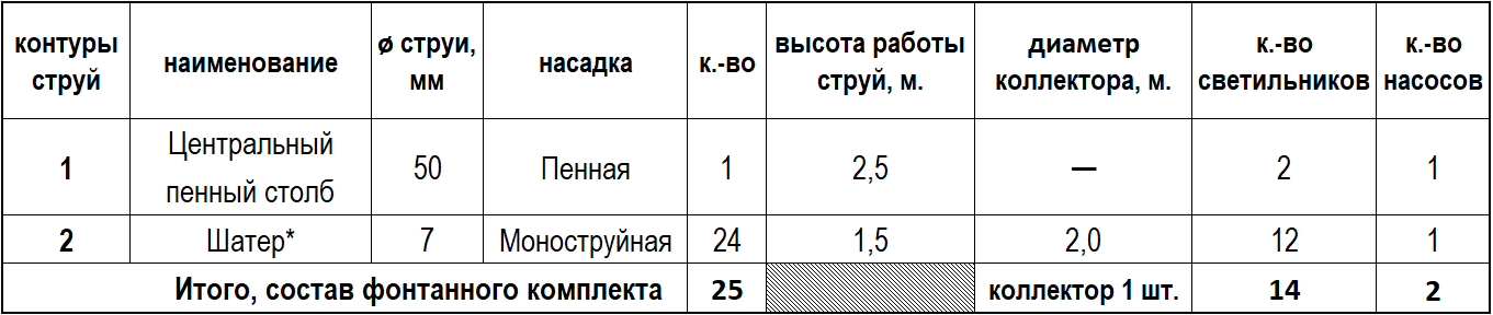1. Стоимость фонтанного комплекта указана без учета доставки и сборки.